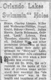 When Daddy and I talked about this today he said that there were a lot of interesting things in it. Written in 1923, he was written during the boom, when the Florida growth was taking place. JFS refers to the boys using the swimming hole from 1908 - 1914. Daddy said that he had never been quite clear on when JFS first moved to Florida, but those dates indicate that he was there then. Granddad would have been about nine years old.